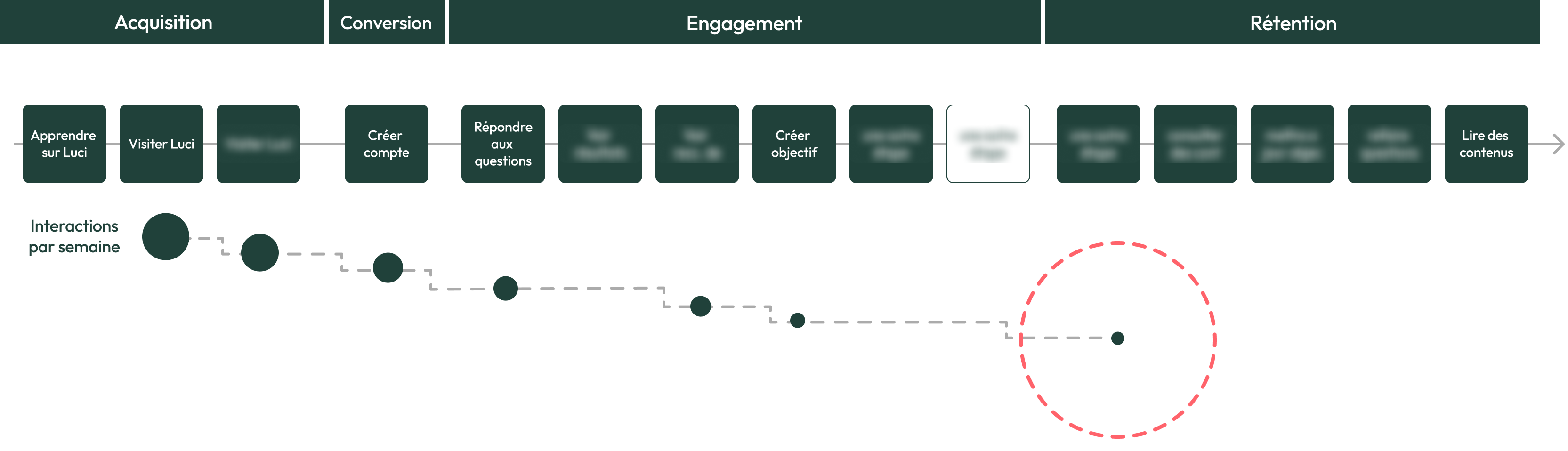 Pour que Luci aide les utilisateurs à adopter de saines habitudes, ils doivent utiliser l’app régulièrement. Or, la rétention était faible et peu d’utilisateurs revenaient sur la plateforme.